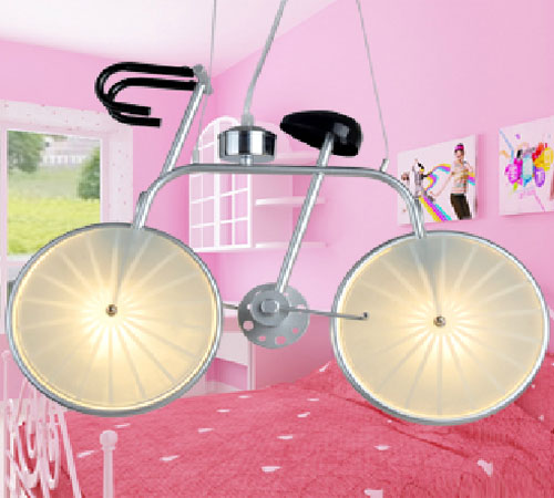 โคมไฟระย้าสำหรับเด็กรูปรถจักรยานสีเงิน มีไฟ