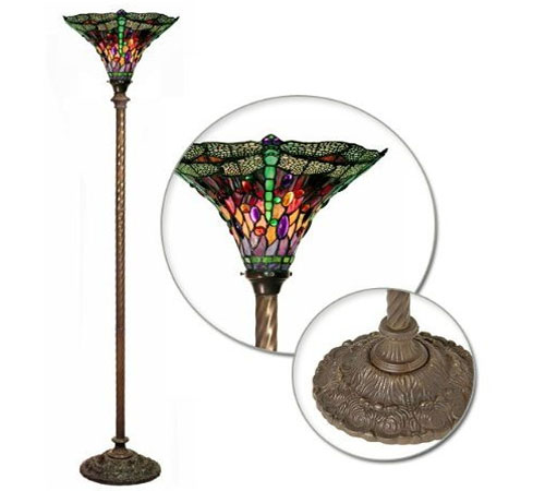 กระจกลวดลายสีเขียวเป็นรูปแมลงปอสวยงาม